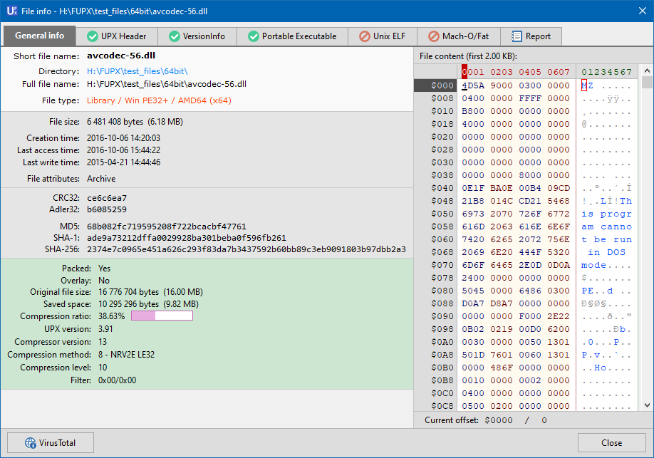 VirusTotal detects a lot of threats in the executable files of the latest version of UPX. Of course, all these threats are false.